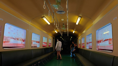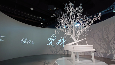 以流行音樂為主題的展覽空間並結合自動語音導覽機(戴耳機),走到哪就會自動播放講解和音樂,讓人更貼近及沉浸當前主題展覽。